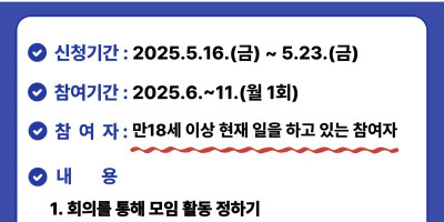 2026 여름방학특별활동교실 참여자 모집 안녕하세요. 서울시립뇌성마비복지관 김한빈 사회복지사입니다. 2026년 여름방학특별활동교실 참여자 모집 안내드립니다. - 모집기간 : 2025.12.15.(월)~2025.12.22.(월) - 운영기간 : 2026.1.12.(월)~2026.1.30.(금) - 신청방법 : 온라인 접수(구글 설문지) 및 방문접수 - 신청링크 : https://forms.gle/AuPZ9GpuU5Qs3yVA7 - 참여자 : 초·중·고등학교에 재학 중인 뇌성마비학생(※우리 복지관에 등록된 분들 한해서 신청 가능합니다.) - 문의 : 함께성장팀 김한빈 사회복지사(02-6926-6924)