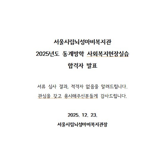2025년도 서울시립뇌성마비복지관 동계방학 사회복지현장실습생 모집 결과