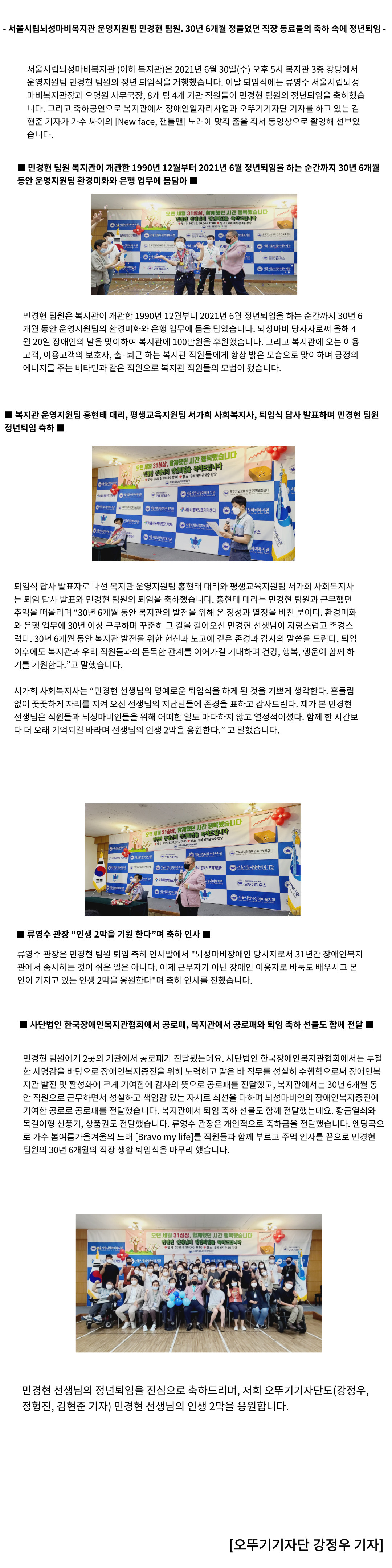 뇌성마비인의 길잡이, 민경현 선생님의 마지막 인사