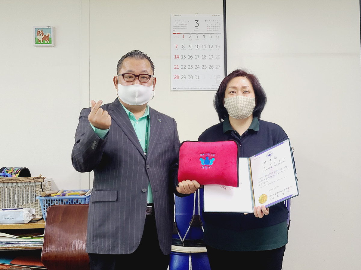 우리 복지관 1층 오뚜기교실 1반에서 어울림미술교실을 진행하는 미술 전문 강사에게 위촉장과 오뚜기쿠션기념품을 전달하고, 프로그램 진행에 관해 이야기하는 시간을 가졌습니다.